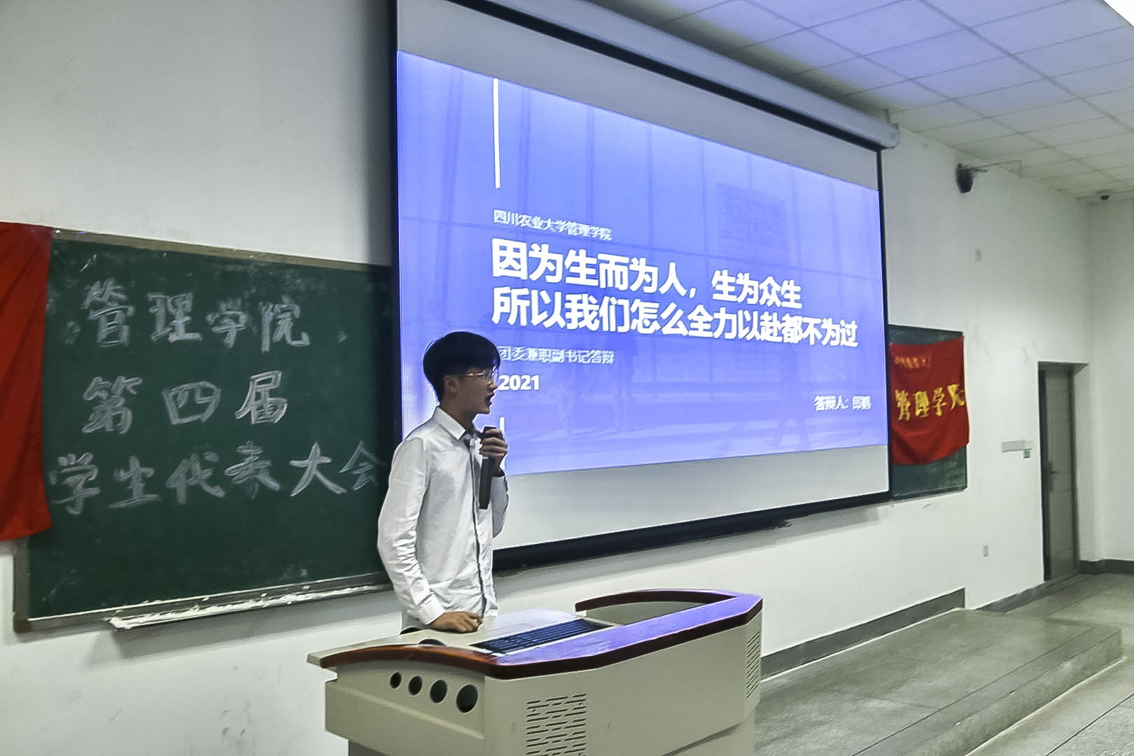 大会在庄严的国歌声中开始,学院学生会主席陈玉坤做学生会工作报告,他从特色活动、学风建设、学生服务、聚焦新媒、防疫工作等五方面回顾总结了过去一年学生会的重要成绩和不足。学生会工作报告交大会进行审议。随后,学院学生团委副书记詹顺涵围绕团的建设、志愿服务、社会实践、双创活动和二课改革五方面总结了团委过去一年的充实工作。李建强就本次学生代表大会暨学生团体联合会主席团换届大会发表讲话,肯定第六届学生团体联合会的工作和作用,他表示,希望各位学生干部可以充分领悟服务精神,服务于学生的成长和发展,发挥积极作用。
