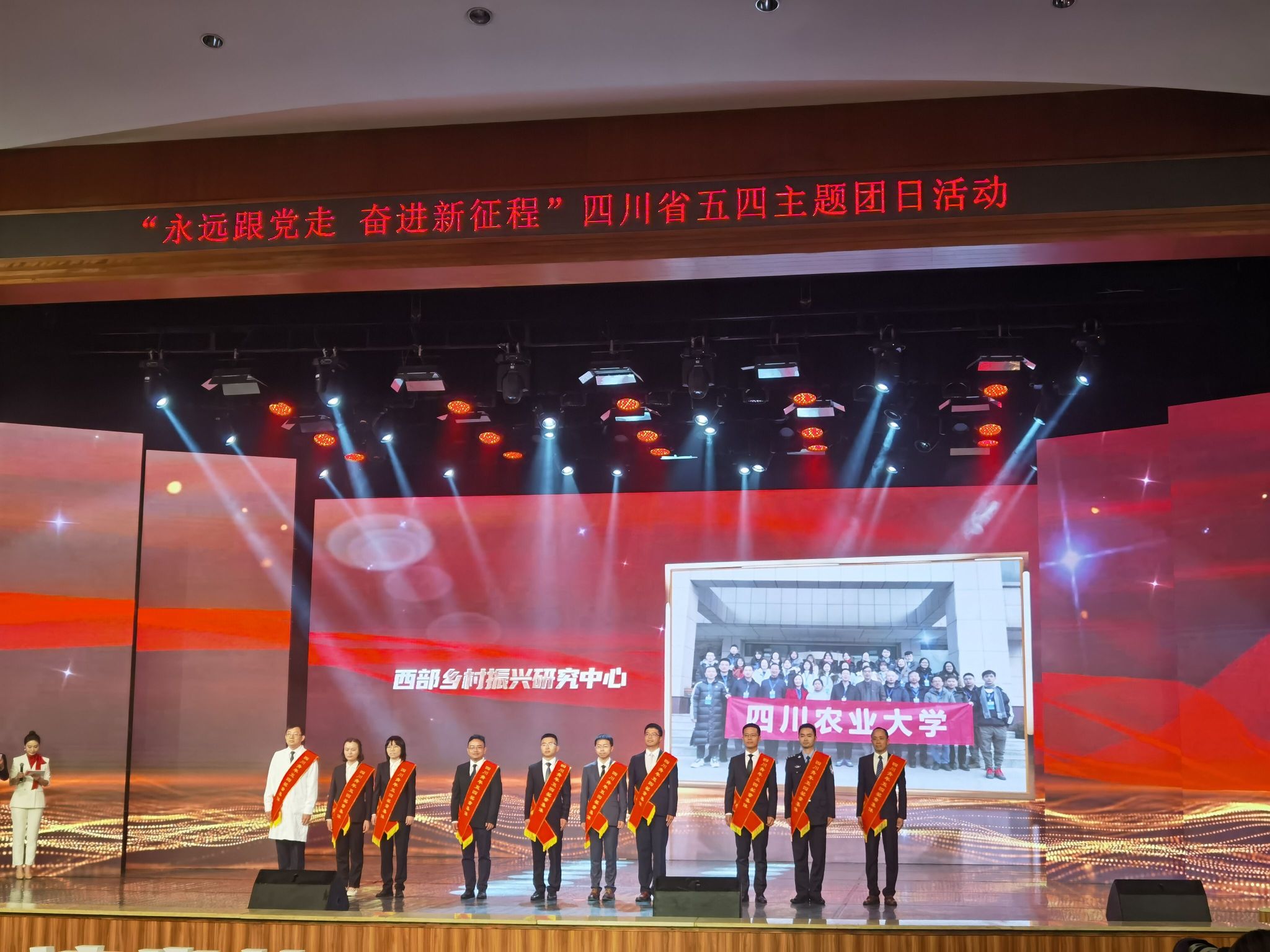 5月4日,共青团四川省委、四川省青年联合会在电子科技大学清水河校区举行“永远跟党走 奋进新征程”四川省五四主题团日活动,授予扎西娜姆等20名同志第26届四川青年五四奖章,授予西部乡村振兴研究中心等10个青年集体第26届四川青年五四奖章集体。现场,36365线路官网青年教师陈光燕副教授代表西部乡村振兴研究中心上台领奖。