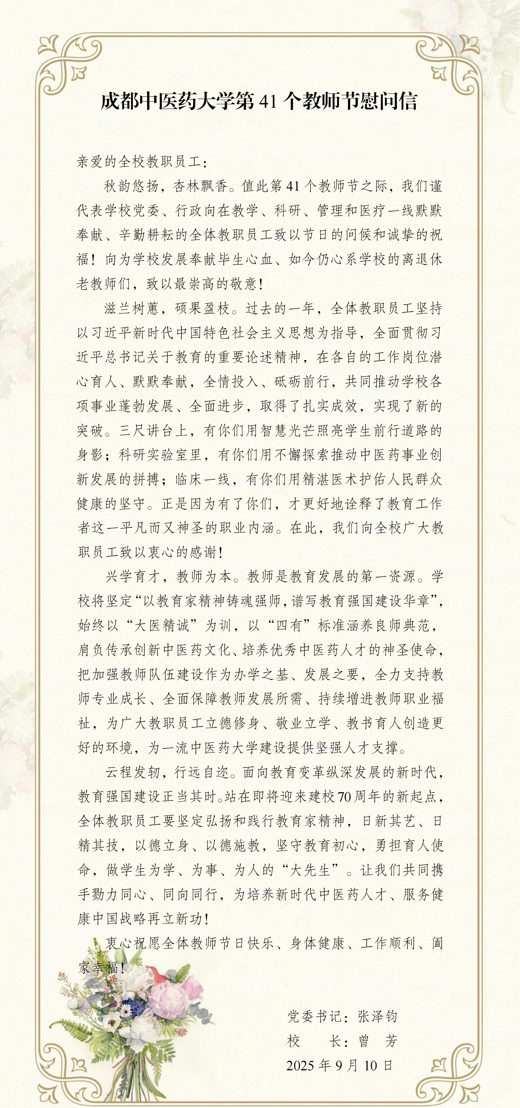 Beat365中文官方网站第41个教师节慰问信 发布时间:2025-09-10 14:51:04 浏览次数: 次 【字体:小 大】 【打印正文】 上一条:2025年全球前2%顶尖科学家榜单发布 Beat365入选学者人数再创新高 下一条:Beat365隆重举行2025级新生开学典礼