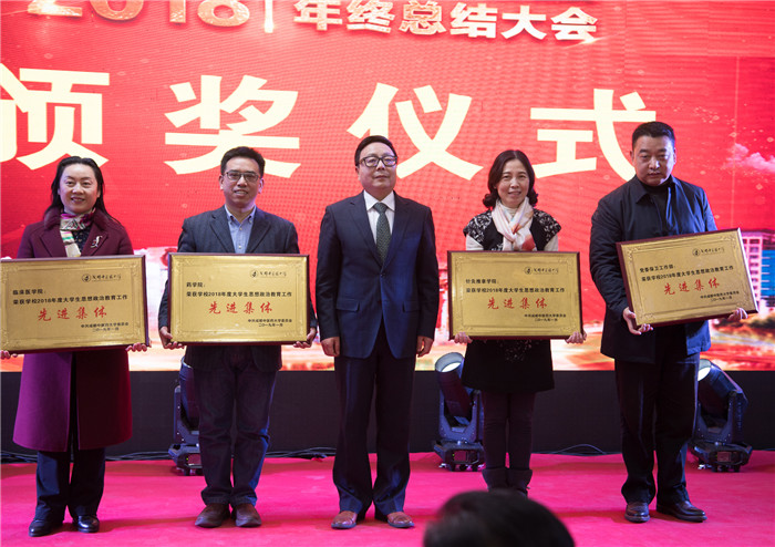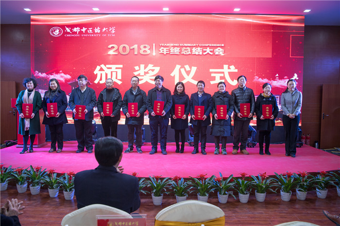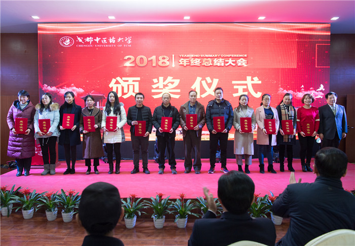 为后勤孺子牛获得者、“创青春”大学生创新创业大赛的优秀指导老师、四川省脱贫攻坚先进个人获得者、2018年度考核优秀的教职工、中层干部等管理服务类获奖代表颁奖。