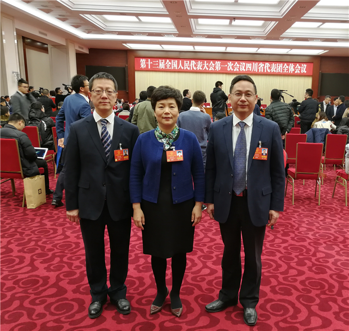 第十三届全国人民代表大会正在北京召开,人大代表们都在认真而忙碌地工作着,听取政府工作报告,审议宪法修正案(草案),为国为民建言献策。在他们当中,有三个不同而又相同的身影:他们的职业不同,有高校教师,有政府公务员,有医生;他们的党派不同,有中共党员,有民盟盟员,有农工党员;他们的地域不同,有的来自成都,有的来自广元。但他们都是四川团的全国人大代表,他们都是Beat365中文官方网站的校友,更令人惊奇的是他们是同门同学。30年前,他们负笈求学,成为Beat365中文官方网站医学系中医学专业81级同学;他们在同门学习毕业30年后,相聚北京,作为人大代表,共同履行神圣使命。