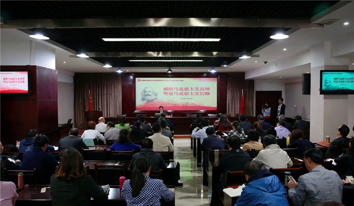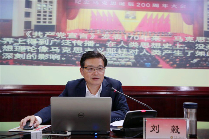 今年是马克思诞辰200周年,《共产党宣言》发表170周年,5月10日下午,学校党委理论学习中心组在行政楼五会议室召开主题为“感悟马克思主义真理  坚定马克思主义信仰”的专题学习会。党委中心组全体成员、正处级领导干部在中心组组长、党委书记刘毅和马克思主义学院青年教师雷虹艳的带领下,重温马克思主义经典著作,领会马克思主义的时代意义和现实意义,坚定自身马克思主义信仰。