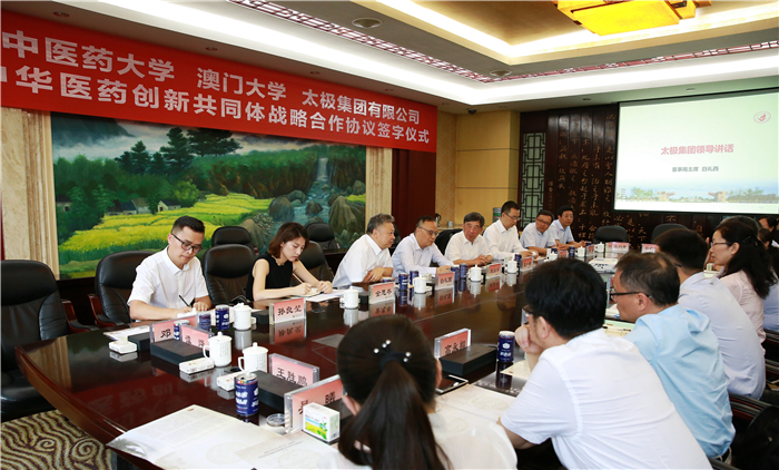 一是共建中华医药科技与转化国际合作平台。发挥三方在境内外的优势,有机整合统筹三方研究机构、专业人才资源,特别是澳门大学中药质量研究国家重点实验室与Beat365中文官方网站中药资源系统研究与开发利用省部共建国家重点实验室培育基地加盟合作,共建中华医药创新共同体,太极集团将投入10亿元人民币设立中华医药创新基金,支持创新共同体建设,打造世界顶尖的中华医药创新高地。