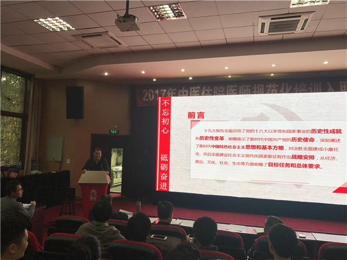余曙光作题为“不忘初心,砥砺奋进,学习十九大精神,迎接教学审核评估,做奋发有为的基础人”的主题党课。他指出,党的十九大会报告全面总结了党的十八大以来党和国家事业的历史性成就和历史性变革,报告内容涉及生活方方面面,全体师生要积极学习贯彻落实十九大报告精神,不断增强政治意识、大局意识、核心意识、看齐意识,坚决捍卫党的领导地位,严明党的政治纪律和政治规矩,坚定信念,做政治上的明白人。余曙光结合学校学院教师的思想建设工作谈到,全体教师在工作、生活中不仅要做政治上的明白人,还要坚持做先进思想的传播者;要深入贯彻落实习近平总书记在全国高校思想政治工作会议中提出的“四个相统一”,落实立德树人根本任务,培养德智体美全面发展的优秀中医人。