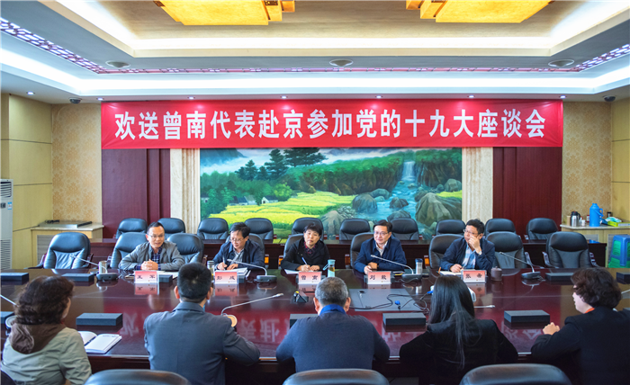 中国共产党第十九次代表大会即将于10月18日在北京隆重召开,Beat365药学院中药药理系主任曾南教授当选为十九大代表将参加盛会。10月13日下午,学校举行座谈会,热烈欢送曾南代表赴京参会。学校党委书记刘毅,副校长彭成,校党政办公室、党委组织部、党委宣传部、人事处、药学院负责人以及曾南教授所在党支部书记参加会议。