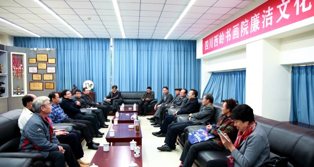11月16日,为大力营造学习宣传贯彻《准则》《条例》的浓烈氛围,加强反倡廉文化建设,提升人文素养,优化校园环境,学校邀请四川西岭书画院书画艺术家走进校园,举行“学准则记条例守纪律,明高线知底线做表率”——廉洁文化进校园活动。在四川西岭书画院院长、原四川省人民政府副省长徐世群的关心和支持下,委托由原四川省人大副主任、四川省老年书画研究会常务副会长李洪仁和西岭书画院常务副院长孙灵根带队,周家兰、卢成春、吴家富、蒲生龙等12位书画艺术家们现场创作以廉洁文化为主题的艺术作品,并将33件精美的艺术作品捐赠给学校作为永久展出。