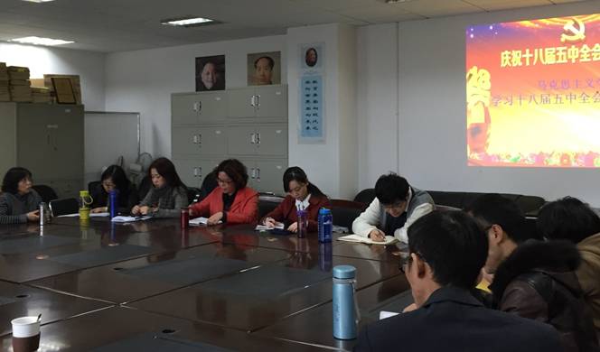党的十八届五中全会是在我国全面建成小康社会进入决胜阶段召开的一次重要会议,对于坚持和发展中国特色社会主义,实现“两个一百年”奋斗目标、实现中华民族伟大复兴的中国梦,具有十分重大的现实意义和深远的历史意义。为了深刻理解和准确把握“十三五”时期我国发展的指导思想和全面建成小康社会新的目标要求, 11月12日下午,马克思主义学院召开深入学习贯彻党的十八届五中全会精神专题会。学院领导班子、教职工党支部书记、教研室主任等参加学习,会议由学院院长刘东梅主持。