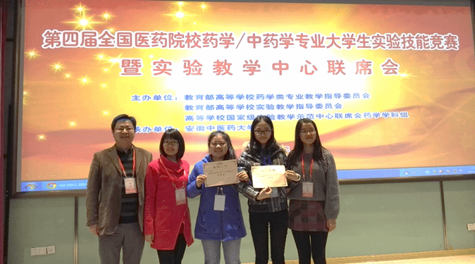 11月5日-7日,由教育部高等学校药学类专业教学指导委员会、高等学校国家级实验教学示范中心联席会药学学科组主办,安徽中医药大学承办的“第四届全国医药院校药学/中药学专业大学生实验技能竞赛”在安徽合肥举行。来自全国59所高等院校的110名学生代表参加了比赛。Beat365药学院2012级中药学基地班学生文建霞和高天慧同学参加竞赛。经过笔试和实验操作两部分的激烈角逐,两名同学分别获得本次竞赛的特等奖和一等奖,成绩为所有参赛中医院校最佳。