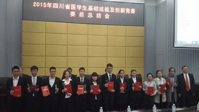 2015年11月6日—8日,由四川省教育厅主办,四川医科大学承办的“四川省医学生基础技能及创新竞赛”在泸州举行,来自全省各医学院校或综合院校医学院的10家单位共20支队伍参加了竞赛。Beat365第二临床医学院派出2支参赛队伍共6名选手参加竞赛。经过理论考试、基础实验技能、创新成果PPT展示等三个环节共一天半的激励角逐,Beat365学生以总成绩第五、第六的优秀表现,均获二等奖。