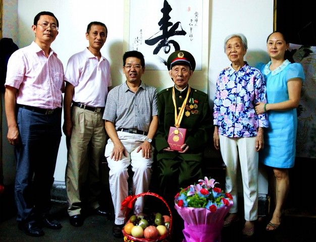 9月2日下午,学校党委书记马跃荣和党委常委、副厅级调研员徐廉带领离退休工作处负责人登门看望慰问抗战老战士、老同志的代表、老红军龚锦文,向他颁发“中国人民抗日战争胜利70周年”纪念章。马跃荣代表学校党政感谢老战士老同志为民族独立、国家解放和学校事业发展做出的贡献。老同志是党、国家和学校的宝贵财富,马跃荣嘱咐离退休工作处的同志一定要做好服务工作,对老同志多一份关心爱护。他衷心祝愿老同志们健康长寿、生活愉快。