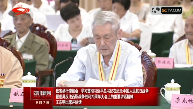 9月7日上午,四川省委在金牛宾馆举行座谈会,学习贯彻习近平总书记在纪念中国人民抗日战争暨世界反法西斯战争胜利70周年大会上的重要讲话精神,省委书记王东明出席座谈会并讲话,省政协主席柯尊平出席。Beat365党委书记马跃荣等部分高校、省直机关领导、抗战老同志、老战士代表参加了会议。Beat365离休干部魏云祥作为一名抗战期间从事地方工作和地下工作的老同志代表,应邀出席座谈会并发言。