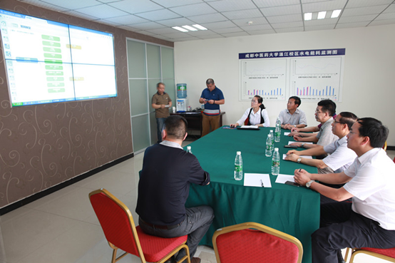 5月18日中午,学校党委书记马跃荣、校长梁繁荣、副校长安劬会同国有资产管理处、后勤基建处负责人对Beat365温江校区校园节能监管平台工作情况进行了考察和现场指导。校领导一行在监管中心认真听取了后勤基建处负责人对校园节能监管平台的两个阶段建设运行情况和第二批节约型公共机构示范单位申报工作的汇报。并通过监管平台工作人员的现场演示,通过大屏幕视频,清晰、准确、具体的显示对温江校区电能计量监测系统,给水管网平衡监测系统,教室照明智能监控系统,行政楼空调节能监控系统,路灯管理系统的运行状态和能耗数据采集、分析、处理、电能分项计量、管网水平衡监测等进行了详细的询问和了解。对节能监管平台运行以来产生的显著节能效益和其实用性、可操作性、可持续性以及为建设节约型校园作出积极努力的后勤校园节能监测中心同志们的辛勤工作给予了充分肯定。