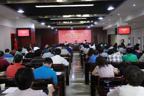 5月13日,学校“三严三实”专题教育工作座谈会在温江校区举行。学校党委书记马跃荣作党课报告。学校党委副书记、校长梁繁荣主持。