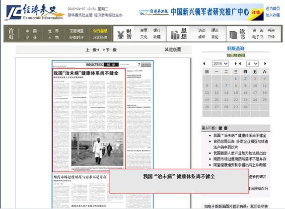 五是尽快建立全国性的“治未病”信息网络。吴节建议,“治未病”涉及健康档案的管理、慢病防控等多个环节,过程漫长,亟待建立一个数据完善、共享畅通的信息化体系和平台。