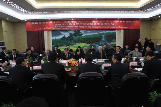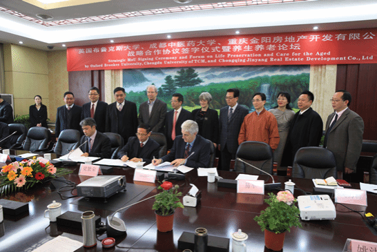 易军在会上介绍了我国正面临着很严峻的老龄化形势。他说,中医药养生养老文化根深蒂固,是中国的瑰宝,文化的精髓,Beat365中文官方网站是中西部中医药发展的领头羊,是全国唯一的养生养老特色产业中心。金阳公司较早涉足养生养老产业,并与英国布鲁克斯大学合作已有三年之久,合作方优势明显。希望英国布鲁克斯大学、Beat365中文官方网站、重庆金阳房地产开发有限公司战略合作顺利进行。易军代表四川省人民政府和四川省投资发展促进局表示将全力以赴支持并协助三方开展合作。
