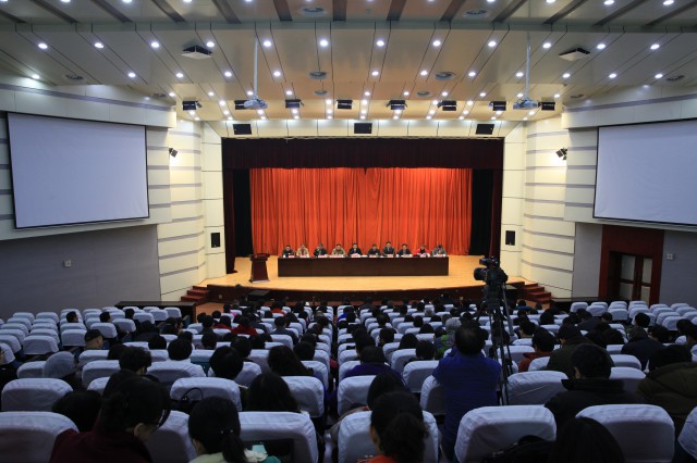 3月10日下午,2014年度校班子民主生活会情况通报会在百会堂召开。学校党委书记马跃荣通报民主生活会情况,党委副书记、副校长沈涛主持大会,校领导,处、科级干部,党支部书记,教研室主任,离退休代表,民主党派及学生代表等200多人参加会议。