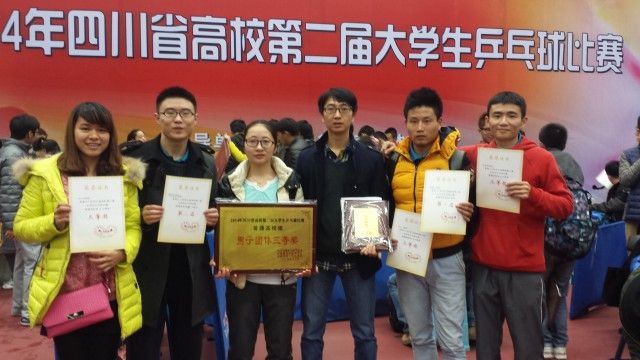 校乒乓球队在四川省第二届大学生乒乓球比赛中获佳绩 发布时间:2014-12-08 13:51:00 浏览次数: 次 【字体:小 大】 2014年四川省第二届高校大学生乒乓球比赛于12月6日至7日在西南交通大学举行,来自四川大学、电子科技大学、西南交通大学、西华大学、四川师范大学、西南石油大学、西华师范大学等32所高校近400名运动员参加比赛。Beat365乒乓球代表队4名运动员在为期两天的比赛中不畏强手、顽强拼搏,来自医学技术学院的刘行行夺得男子单打亚军,来自护理学院的李胤楼和体育学院的李宣运夺得男子双打第五名,体育学院蒋浩获本次比赛“优秀教练员”称号。 (图、文/体育学院蒋浩 编辑/罗晓文) 【打印正文】 上一条:第十届泛珠三角区域(9+2)高等中医药院校合作发展联席会在南宁举行 下一条:校乒乓球队在四川省第二届大学生乒乓球比赛中获佳绩