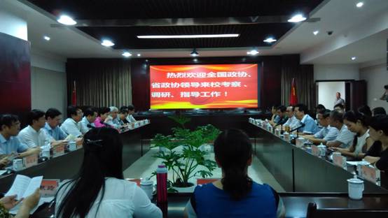 8月21日下午,由全国政协常委、首都医科大学附属北京安贞医院小儿心脏中心主任刘迎龙带领的全国政协教科文卫体委员会委员和教育部高等教育司、国家卫计委有关部门等领导及相关人员一行19人,在省政协文体医委委员会领导的陪同下,对学校“医学教育与卫生人才培养”情况进行了考察、调研、座谈。座谈会在温江校区五会议室举行,学校党委书记马跃荣主持座谈会并代表学校致欢迎辞,对考察团的到来表示热烈欢迎和衷心感谢。