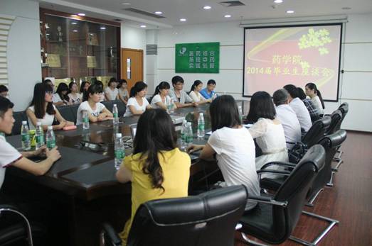6月19日,药学院举行2014届毕业生座谈会,学院党委书记王军、副书记谌立巍、副院长裴瑾以及毕业班辅导员参加此次会议。会议由谌立巍主持。