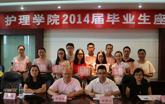 6月19日, 护理学院2014届毕业生座谈会暨党员先锋队文明离校活动启动仪式在温江校区举行。分党委书记刘世云,副书记孔静,副院长侯朝铭、高静,学院党政办主任、学生科长及教研室主任、毕业班辅导员和36名本专科毕业生代表、党员代表参加座谈。