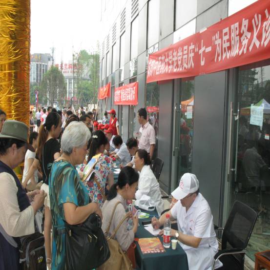 6月18日,离退休党委与琴台路社区联合在青羊宫附近举办了老党员庆“七·一”为民服务义诊和党风廉政文化宣传活动。