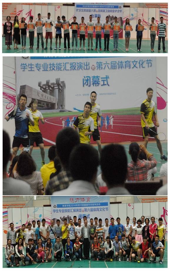 体育学院第六届体育文化节闭幕 发布时间:2014-06-15 20:59:00 浏览次数: 次 【字体:小 大】 6月12日,体育学院2014年教学质量提升月系列活动之学生专业技能汇报演出暨第六届体育文化节闭幕式在体育馆举行, 为在文化节活动中获奖的集体和个人颁发奖状、奖品,并表演了排舞、拳道操、武术、啦啦操等精彩节目。 (体育学院) 【打印正文】 上一条:【媒体聚焦】人民网媒体等关注管理学院院企合作项目 下一条:体育学院第六届体育文化节闭幕