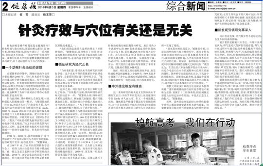 “首先是对照组的设计。”梁繁荣分析,目前在国外的经穴特异性研究中,被用于作为常规针刺对照的方法可基本概括为非经非穴、浅针刺和安慰针刺,几乎很少涉及不同经穴之间的比较,例如同一条经脉的不同腧穴,或不同经脉相同属性的腧穴之间的比较。“我们认为,在关注经穴本身的特异性治疗效应时,应综合考虑穴位本身的属性和穴位所在经脉的属性。国外科学家都是西医出身,不具备中医经络知识。以德国试验为例,是通过专家调研,取问卷回复中重复率最高的几个穴位做真穴,这种取穴方式本身就不符合中医理论。”