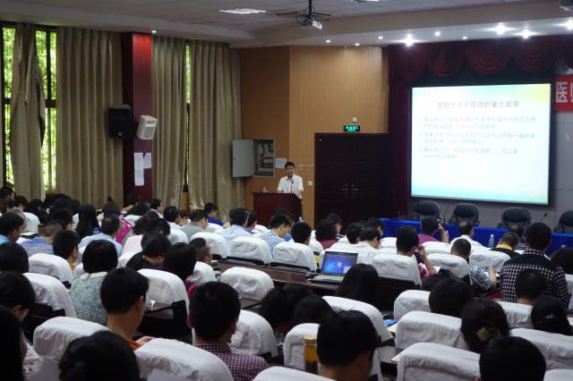 裴泽庆从《党章》的时代背景、《党章》的历史发展与理论脉络、《党章》演进的现实意义与思考等三个方面为与会人员作了一场精彩的报告。
