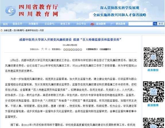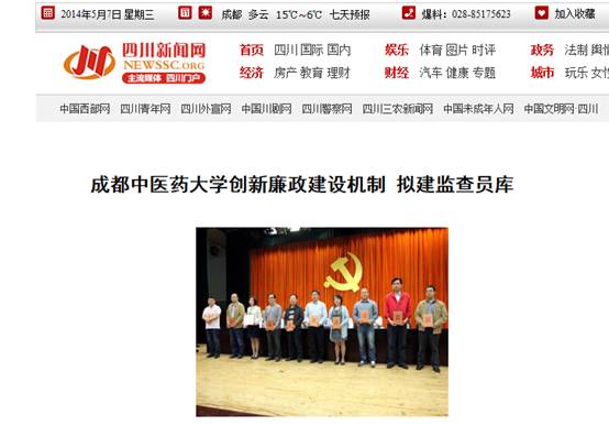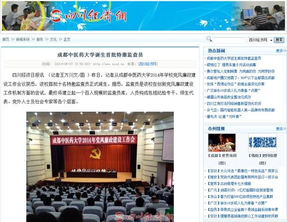 学校创新党风廉政建设机制受到《中国教育报》、四川教育电视台、四川省教育厅教育信息网、《四川经济日报》、中国网、四川新闻网、四川在线等媒体关注。以下是部分来访新闻媒体报道情况: