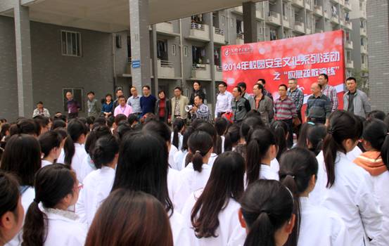 4月9日中午13:00,由学校社会治安综合治理委员会主办,学校保卫处、医学技术学院承办的2014年校园安全文化系列活动之应急疏散演练活动在温江校区3号综合实验楼举行。学校纪委书记、综治委主任延建明担任总指挥,学校综治委成员、重点单位负责人到演练现场观摩、点评,参加此次应急疏散演练活动共计师生近300人。