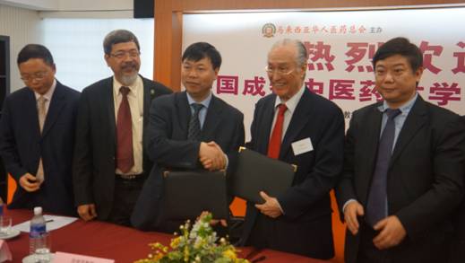 在为期5天的访问行程中,专家组先后访问了马来西亚卫生部传统与辅助医药组、马来西亚著名的传媒集团Karangkraf、南洋商报社、怡保仁爱中医医院、马来西亚华人医药总会及马来西亚中医师公会总会。专家组与马来西亚卫生部传统与辅助医药组官员吴清顺女士、马来西亚卫生部医药副总监拿督再也英德兰先生、马来西亚华人医药总会会长陈凯希先生等重要人士进行了深入友好的洽谈与协商,就中医药在马来西亚传统医药领域的政策法规、中医药的现代医疗评价体系、糖尿病的中医药防控等话题进行了深入磋商。专家组组长段俊国教授代表Beat365中文官方网站附属医院和国家中医糖尿病临床研究基地与马来西亚华人医药总会签署了合作备忘录。