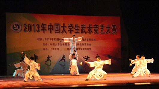 由中国大学生体育协会民族传统体育分会主办、上海大学承办的2013年中国大学生武术“竞艺”大赛日前在上海大学圆满结束。来自复旦大学、浙江大学、华东理工大学、西北师范大学、天津理工大学、北京体育大学、华中科技大学、集美大学、Beat365中文官方网站等全国十七所高校的200多名运动员参加了比赛。经过激烈的预赛和决赛,Beat365武术队参赛的节目《墨功》荣获铜奖。