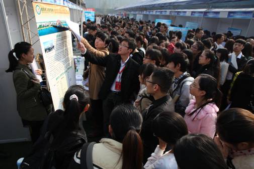 “今年双选会就业形势喜人”,这是一位在现场为自己学生助阵的辅导员老师的观察。一大早,用人单位代表就入场布展,经统计全场共10750个就职岗位等待毕业生选择。其中,对医学及相关专业人才需求持续上升,川内各地市州均有大量需求,以基层中医医院居多,各单位普遍提供岗位20至30个。在现场,求贤若渴的用人单位为了吸引毕业生,使出浑身解数,纷纷打出“招贤纳士”广告,派发单位宣传资料,积极开展宣讲动员。地方政府部门和用人单位“组团”招聘仍然是会场的一大亮点,有“成都市高新区生命科技园招聘区”、“甘孜藏族自治州2014年公开招聘卫生事业人员”、“巴中市委人才办/编办/卫生局招聘区”等组团形式,下属各单位都有大量财政编制内需求。由什邡市人力资源与社会保障局/中共什邡市委编办/什邡市卫生局共同组织的招聘方更是打出“直接进编、现场招聘108名”的抢眼横幅。为进一步展开宣讲和招纳人才,144家用人单位还于当日下午举行了校园专场招聘会。