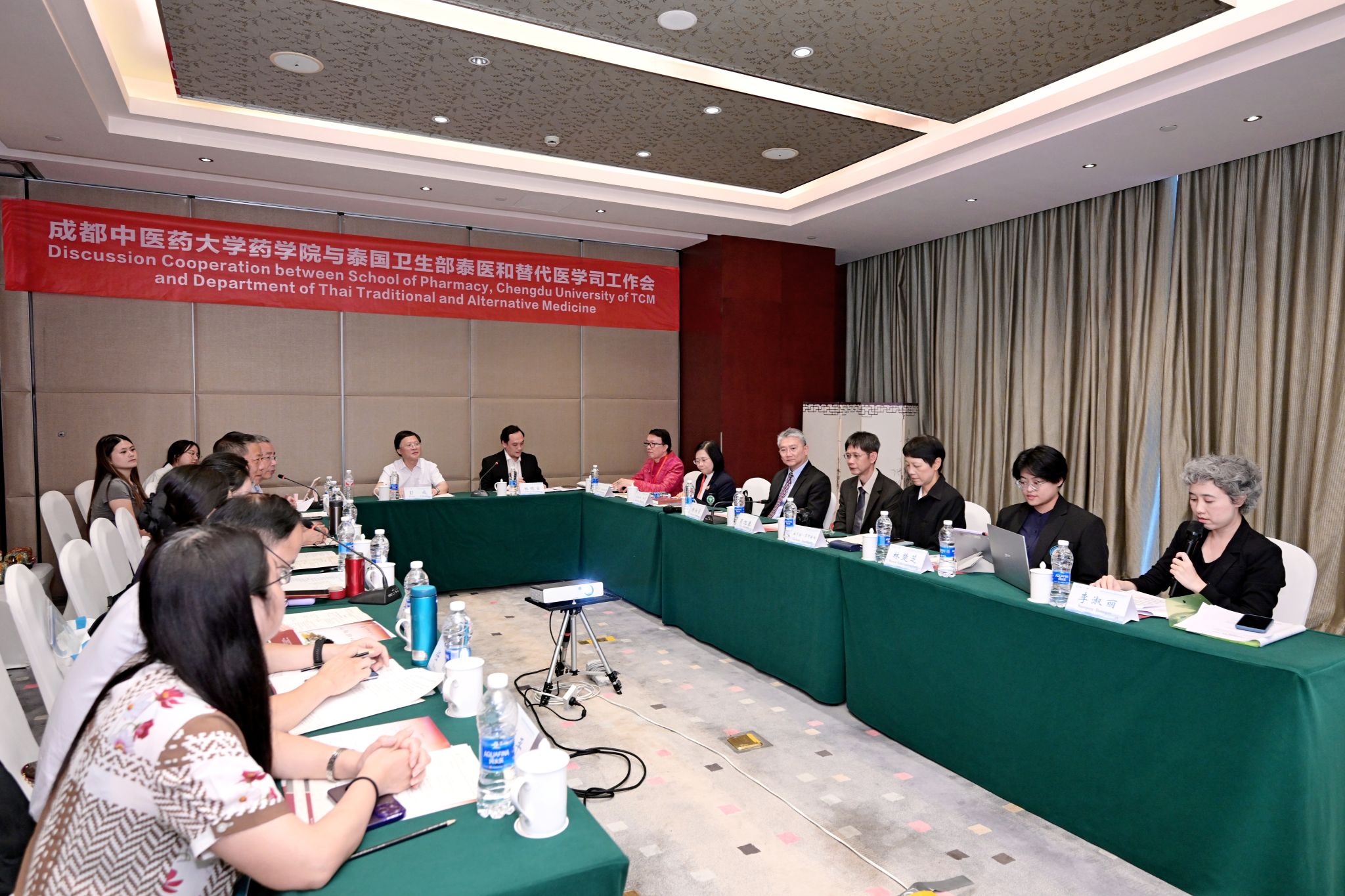 会议期间,还举行了学校与泰国卫生部泰医和替代医学司的闭门工作会,就《泰国中药炮制规范》下册书稿进行讨论,商议进一步合作事项。