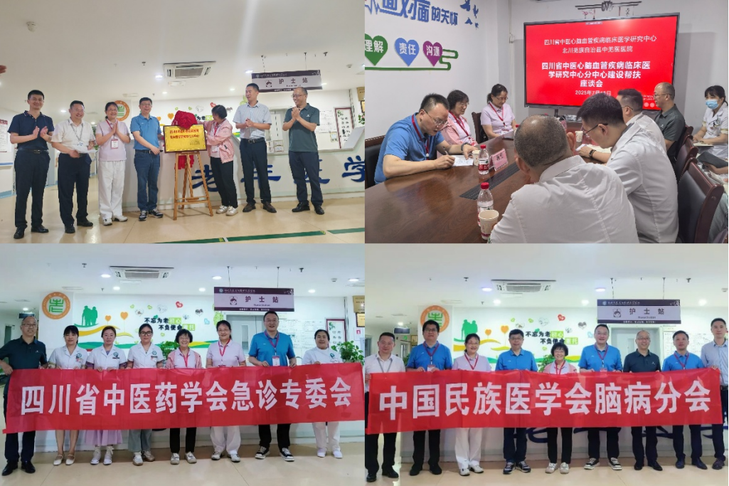 黄勇、赵良斌、杜勇军三位专家深入病房,开展教学查房和指导活动。临床医学院/附属医院急诊科学术主任张晓云结合自身专科优势,现场指导医院“四川省中医⼼脑⾎管疾病临床医学研究中⼼分中⼼”建设并揭牌,助力医院专科服务能力提升。药学院三位专家前往四川康养健生物科技有限公司和盖头山省级中医药康养基地进行实地参观调研,为企业和基地的发展提供指导和建议。