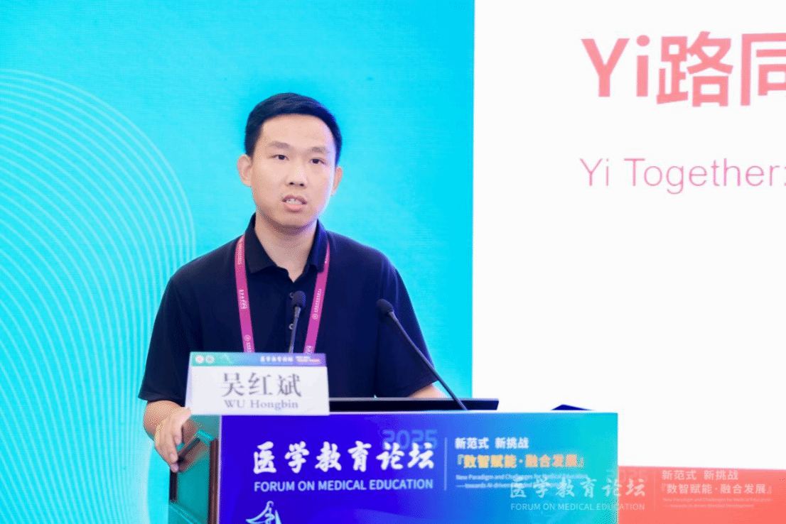 吴红斌以“Yi路同行:研究助力医学生成长与发展”为题,重点介绍了Yi路同行项目从项目缘起、设计、干预、结果到反馈的全过程,旨在通过干预措施提升医学生职业承诺,促进其职业发展。聚焦学生从基础课程学习向临床专业实践过渡的关键期,将思政教育与专业素养提升深度融合,为学生搭建起成长的桥梁。