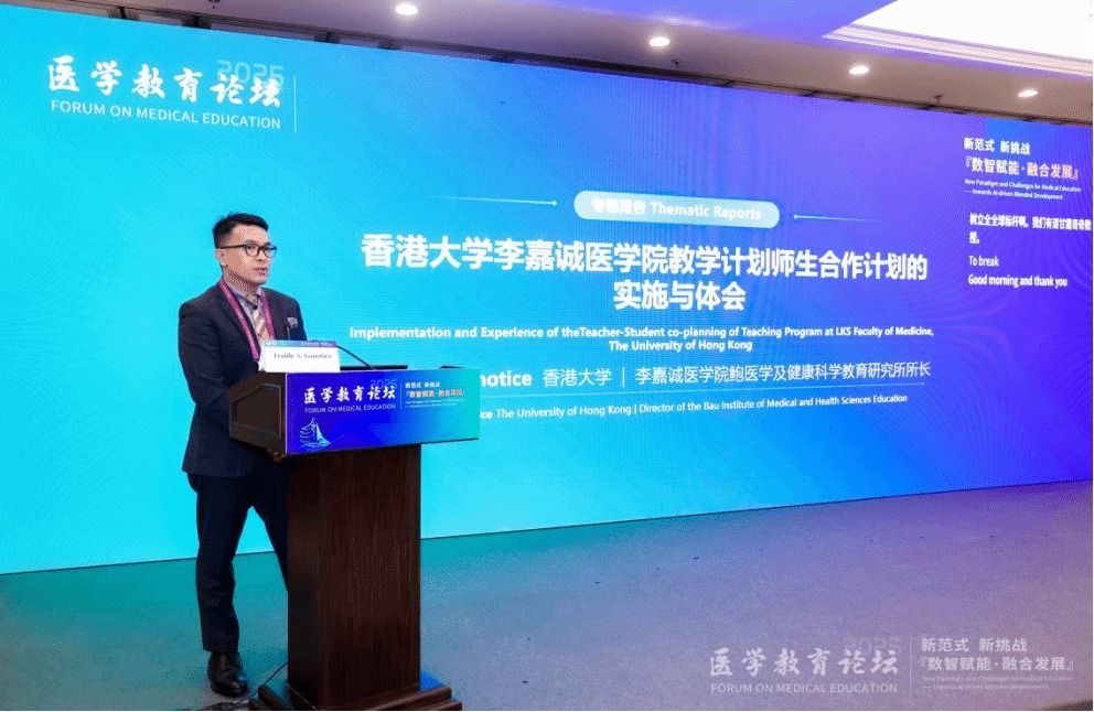 郑加麟深入剖析了人工智能给医学生发展带来的挑战与机遇,聚焦数字化医学教育创新的难点,介绍以“胜任力”为导向的卓越医学人才培养体系的探索与实践,强调数智化背景下医学生发展的方向需拓展国际视野,为探索医学教育国际化路径提供了重要参考。