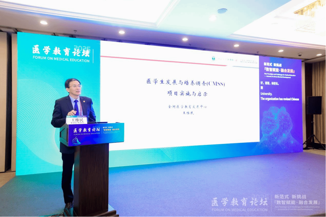王维民详细介绍了医学生发展与培养调查(CMSS)项目实施情况,深入分析第四代医学教育的内涵,全面解读CMSS项目关注到医学发展与培养质量情况及有效环节等情况,提出面对第四代医学教育新范式,需从学生成长的视角评价医学教育,以学生为主体,致力于多维服务体系,通过数智驱动构建科学、持续优化的医学生发展与培养评价体系,助力医学教育发展。