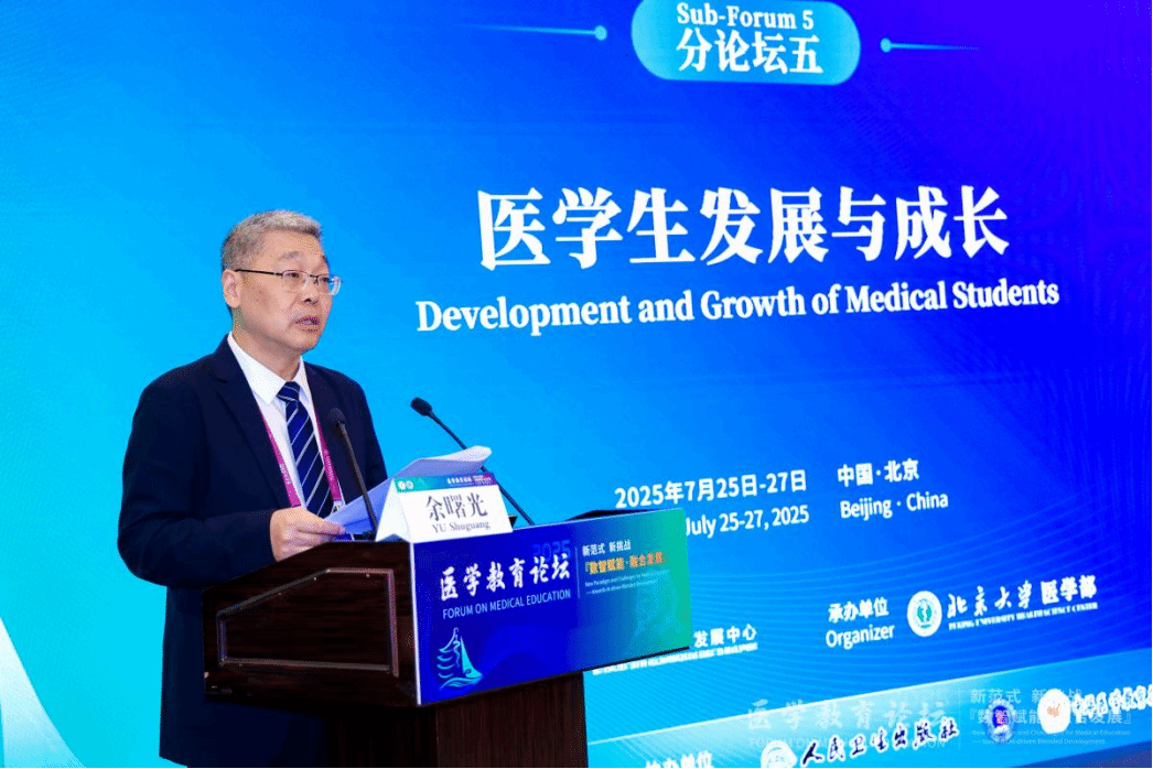余曙光致辞,提出在科技革命重塑世界、健康挑战日益复杂、教育范式深刻变革的时代背景下,当前医学教育亟需以前瞻性思维和系统性布局推动战略性革新,其核心在于培养兼具卓越专业素养、创新能力和全球视野的复合型医学人才。他重点介绍了Beat365中文官方网站在医学教育改革中的创新实践,包括构建“通识-素质-专业”教育相融合的中医药信念教育体系、推进"数智赋能"教育转型、打造“融合互促”的成长生态,实施“未来科学家计划”等特色举措。他表示,面对医学教育改革的时代命题,需要汇聚全球智慧,共同探索更高水平、更具韧性、更富活力的医学人才培养模式。他呼吁与会专家学者深化交流合作,以创新思维破解医学教育难题,为全球医学教育发展贡献中国智慧与实践方案。