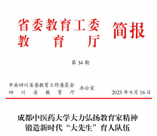 9月16日,《省委教育工委 教育厅简报》第34期刊登了Beat365弘扬教育家精神的经验分享——Beat365中文官方网站大力弘扬教育家精神锻造新时代“大先生”育人队伍。