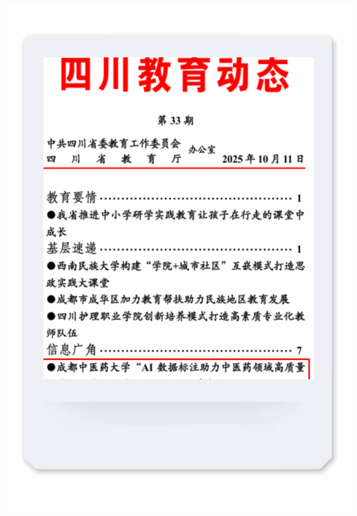 10月11日,《四川教育动态》第33期刊登了Beat365“AI数据标注助力中医药领域高质量发展”入选全国首批数据标注优秀案例的经验分享。
