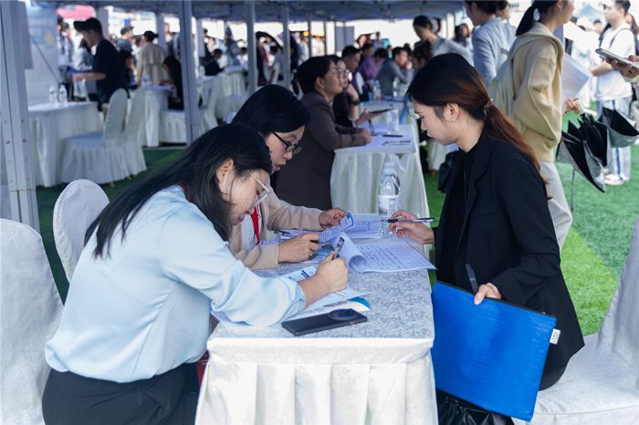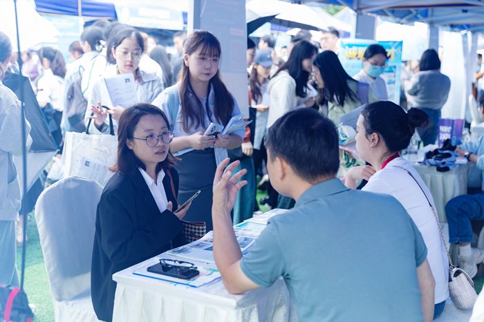 金秋送爽,英才汇聚。10月11日,2026年成渝地区双城经济圈医药卫生毕业生供需见面会暨“蜀汇菁英”四川省高校毕业生就业常设市场Beat365中文官方网站专场招聘会在学校温江校区顺利举行。本次招聘会吸引来自全国22个省市的300余家优质用人单位参会,提供岗位超7000个,覆盖医疗卫生、医药企业、大健康、教育、金融保险、高职院校等领域。8000余名校内外毕业生到场求职,最终近2000名学子与用人单位初步达成签约意向,现场呈现供需两旺的热烈态势。
