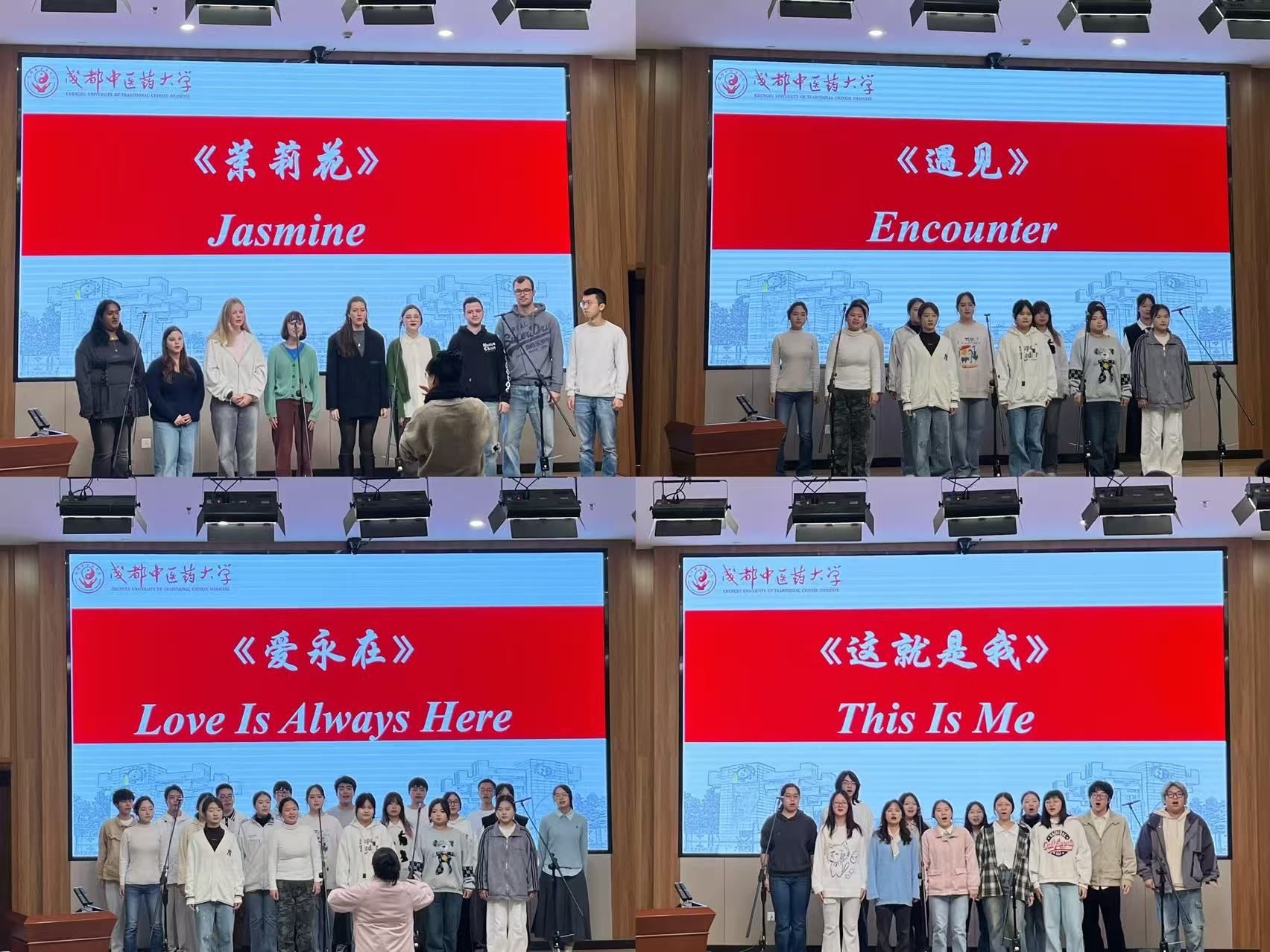 在中德师生交流环节,Beat365艺术团合唱队与德国伯乐中文合唱团以歌会友,唱响友谊。德国伯乐中文合唱团用字正腔圆的中文演唱了脍炙人口的中国民歌《茉莉花》,其精准的汉语发音和深情的演绎赢得满堂喝彩。随后,Beat365艺术团合唱队演唱了《遇见》《爱永在》《This is me》三首经典曲目,现场气氛随着旋律层层升温,掌声如潮。