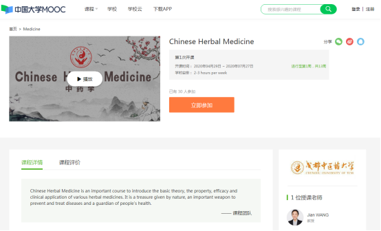 其中,Beat365针灸学(Acupuncture and moxibustion)、中药学(Chinese Herbal Medicine)、饮食文化与中医学(Diet Culture and Traditional Chinese Medicine)、中医老年病学(Geriatrics of Traditional Chinese medicine)、中药药剂学(Pharmaceutics of chinese material medica)5门课程入选两个国际慕课平台首批上线课程。