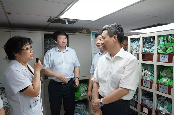 在Beat365附属医院,王志勇一行在医院院长谢春光的陪同下先后考察调研了医院中药房、国家中医临床研究(糖尿病)基地和中医经典病房。在中药房,调研组就医院中药质量管理问题进行了解和指导,提出医院应从中药的流通、加工和使用等方面加强中药质量管理,要实现中药使用全流程有据可循、有法可依,保证百姓用到好中药、放心药。