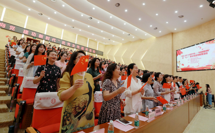 结合“七一”建党节,活动现场开展了“巾帼心向党礼赞新中国”——同唱祖国颂歌庆“七一”群众性宣传教育活动,全体参会人员起立齐声高唱《党呀亲爱的妈妈》,优美的旋律,动人的歌词,抒发着每一位中华儿女对党和祖国母亲的无限依恋和感恩之情,唱出了新时代女性亲历祖国取得举世瞩目成就的无比自豪感,和愿为祖国母亲奉献青春和智慧的拳拳爱国之心。