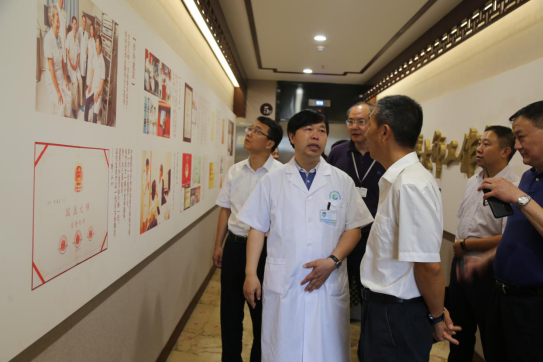 沈骥书记参观途中认真听取了段院长汇报,充分肯定了医院短短两年内在眼科医疗服务体系建设、医疗服务能力、公益科普教育、推进眼科学术发展等方面所取得的成绩,并针对我院加强眼科学术引领、青少年近视防控、规范医院标准化建设存在的问题和不足提出了建议,要求委健康服务业发展处和相关科室负责人员协同研究解决办法。沈书记指出,Beat365中文官方网站附属银海眼科医院在建设和发展过程中,要充分发挥传统中医药优势,不断探讨中医药治疗眼科疑难杂症的新途径、新方法,要学习和借鉴好西医先进技术,做到有机统一形成自己的核心品牌竞争力。此外,医院领导班子要始终坚持把密切沟通交流作为了解诉求、达成共识、提高办理质量的重要途径,真正做到为人民服务。沈书记在参观国医大师工作室期间得知国医大师廖品正和邓亚平教授还在我院坚持坐诊时,特别叮嘱段院长要代他向要廖品正大师和邓亚平教授致以亲切的问候。