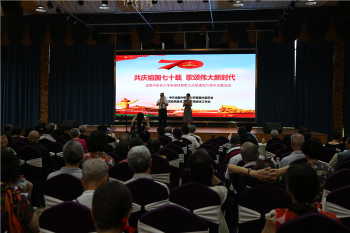 整台演出欢快喜庆、精彩纷呈,表演的歌舞、诗歌、快板等14个节目分别选送自离退休党委各退休支部、Beat365离退休老同志各兴趣团体、四川省第九届老年运动会健身秧歌高校代表队等。老同志们自编自创、自排自演,认真执着、满怀深情,表达对党和祖国的热爱,对成中医的深情厚爱,为即将到来的祖国母亲七十岁生日祝福。