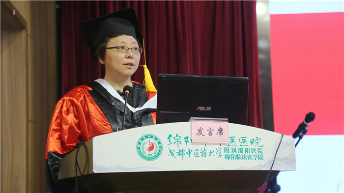 参会领导为首届“蒲辅周班”毕业生拨流苏、授学位、颁发毕业证书;毕业生给老师献上鲜花,表达感激之情;毕业生代表李钰德和教师代表刘铁陵分别作了热情洋溢的发言。毕业生们献上自编自唱歌曲《绵阳蒲班的日子》。