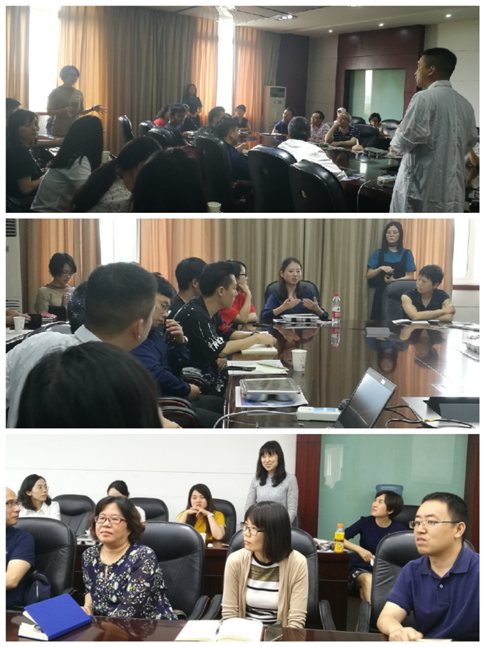 参与教师听完分享后不禁对杨老师课程思政的设计与实践表示赞叹,围绕课程思政这一话题进行了热烈讨论。马克思主义学院教师表示,专业课教师与思政专业教师在课程思政上应通力合作,同向同行,专业课教师要 “敢于亮剑”,思政专业教师则要“精准亮剑”,避免思政疲劳的同时达到全方位育人效果,另外,不主张思政刻意、生硬地植入专业基础课中,而应有技术、有策略、有方法地自然地融于专业课程中。医学技术学院教师认为,课程思政不一定都得言“政”,也要言“正”,正能量、正确的价值观和世界观也是育人的重要方面,提醒老师们在课程思政上不要宥于狭小的范围。有的老师还分享了自己在课堂中思政育人的方法,得到大家的积极响应。